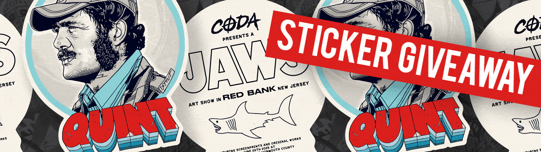 been a bit of a hard month, worldwide and usa-specific. for those looking for a moment of levity, here’s a little contest. email me a picture of you with a tstout print of any size, and i’ll choose 20 of them to send a fancy screenprinted QUINT sticker to, printed by the cadillac of sticker printers, sticker robot. enter once, no need to enter a bunch of times. i’ll pick from the entries by next monday (oct 6th) and post a collage of the winners (you’re all winners in some way).